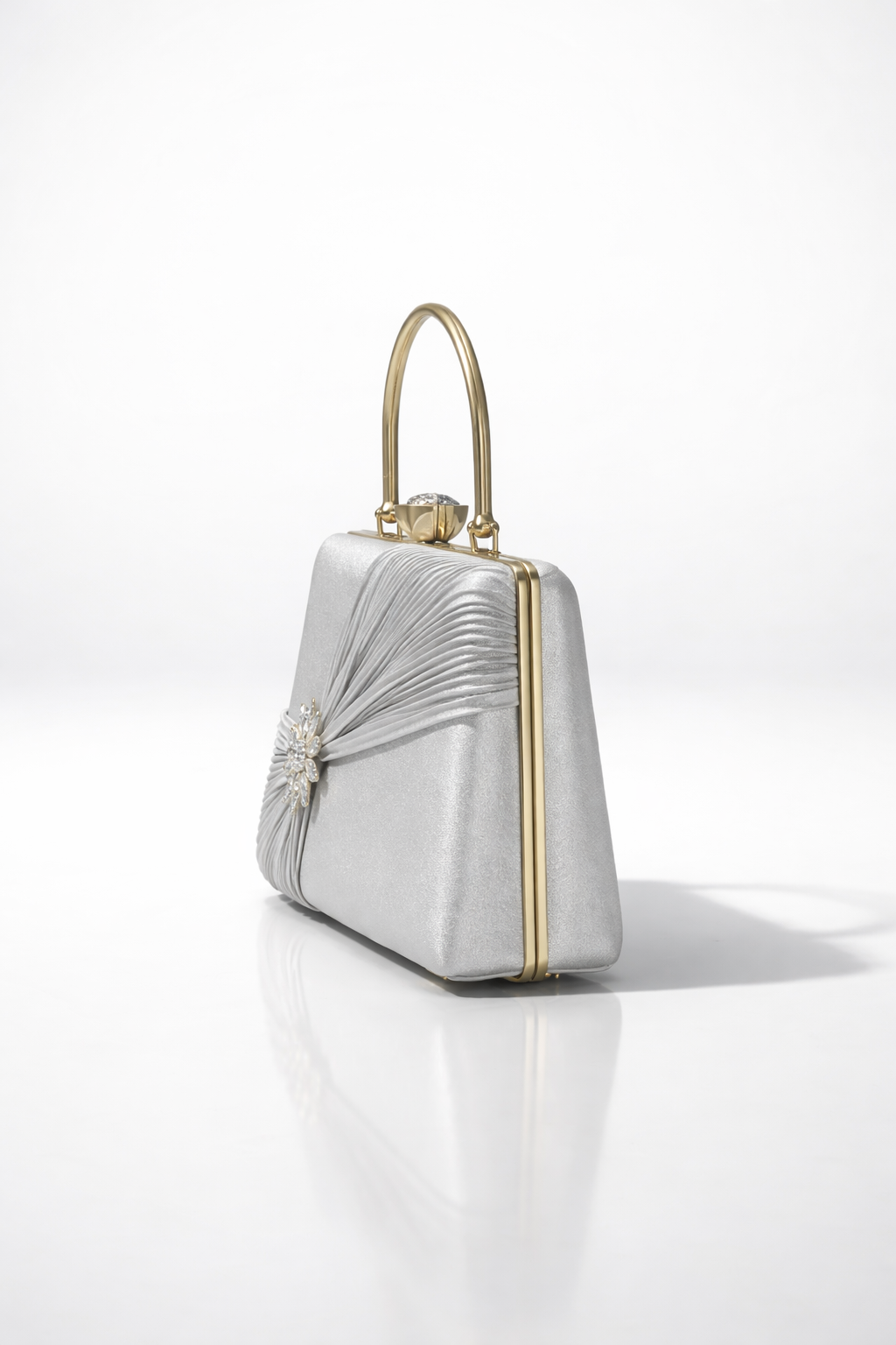 silver color party wear stylish pu/ rexine clutch handle bagSilver color Party Wear Stylish PU/ Rexine Clutch Handle bag