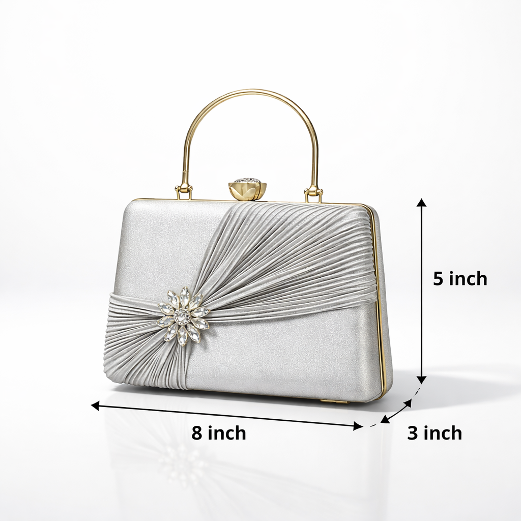 Silver color Party Wear Stylish PU/ Rexine Clutch Handle bag