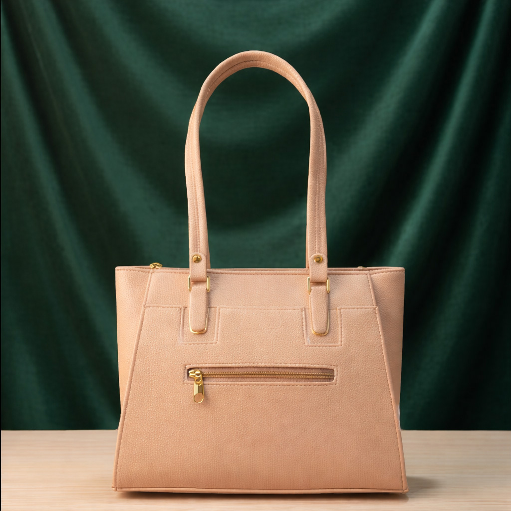 Upgrade your style with this premium quality Ladies Tote Beige Color PU Leather Handbag, which combines both fashion and comfort.